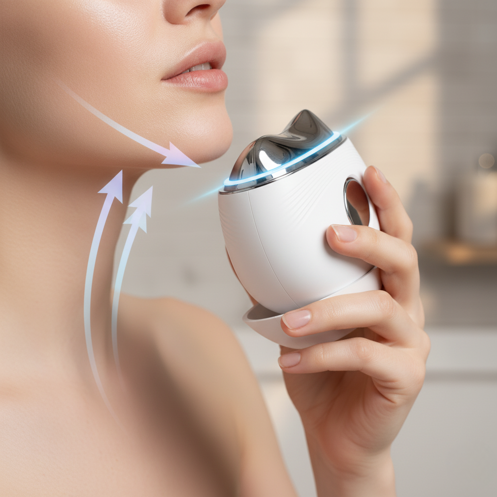 Zachte impulsen activeren de gezichtsspieren en verbeteren de spierspanning.